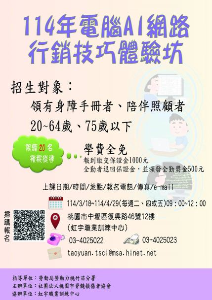 114年度電腦AI網路行銷技巧課程,開始報名嘍!